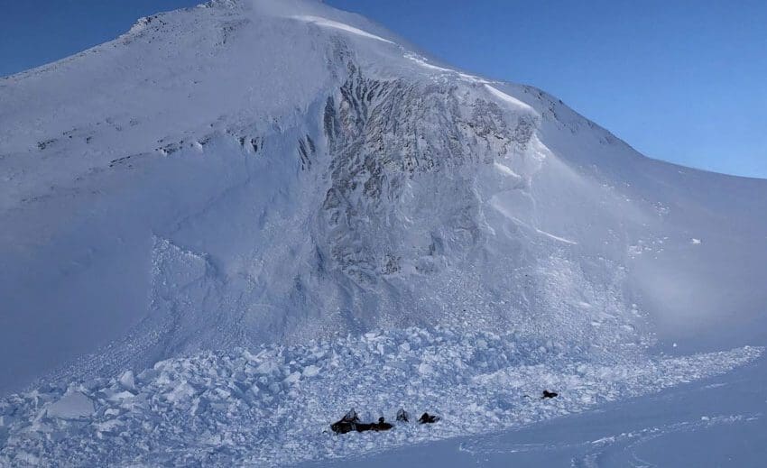 The snow avalanche on Fridtjovbreen on 20 February 2020 killed two people. Photo: The Governor of Svalbard.