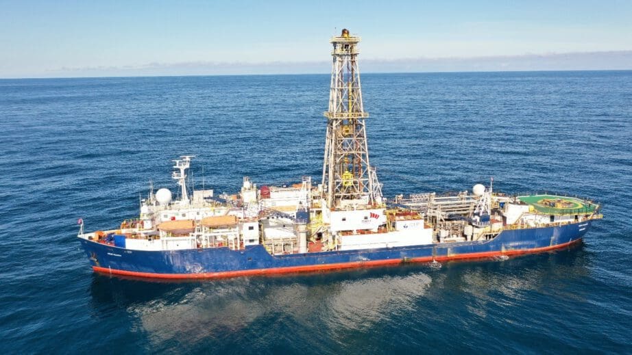 The seagoing research vessel drills core samples and collects measurements from under the sea floor. This way, scientists are given a glimpse into earth’s development. Data from the drilling offer a scientific means of understanding climate and environmental change throughout a significant part of the planet’s history.
