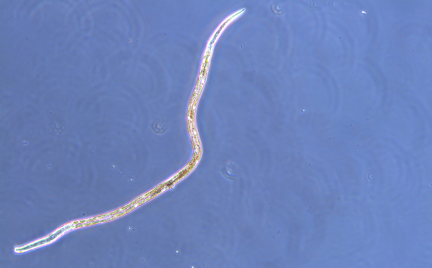 Roundworms of the phylum Nematoda dominate the sympagic meiofauna community in Svalbard. Interestingly, we find all stages – adults, eggs, and larvae – inside the sea ice, with adults appearing at the time when sea ice forms. When the light returns after the polar night and ice algae start growing in the ice, nematodes produce their eggs. These eggs appear in clusters: several microscopic eggs are found together in a transparent sack. As spring progresses and the eggs “mature”, small larvae start to form inside the eggs and they subsequently hatch. Based on what we have observed in our sea ice samples, the hatching takes place when food is plentiful for the “baby” nematodes. This well-timed reproduction ensures that young nematodes can gather enough energy to grow and mature before the ice melts. We do not know what happens to them after the ice melts in summer, but we suspect that they return to the seafloor to finalize their development into adults.