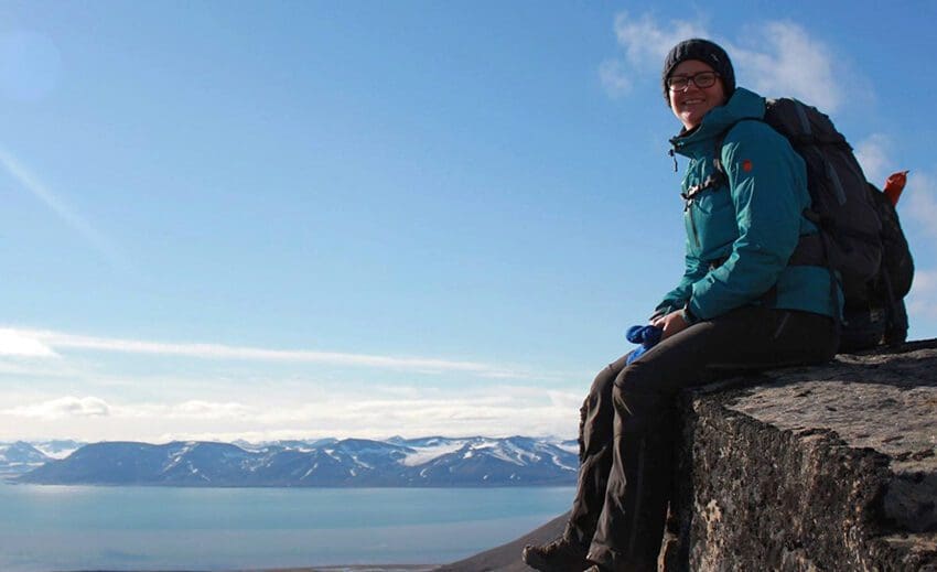 UNIS PhD candidate Hanna Rósa Hjálmarsdóttir hunting for microfossils in Agardhbukta in Svalbard. Photo: Maayke Koevoets.
