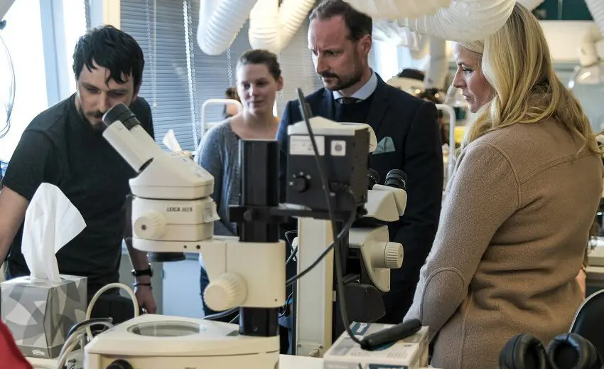 The Royal couple were then escorted to the teaching lab. Associate professor in terrestrial biology, Simone Lang and students showed samples taken from the field during the Arctic Winter Ecology-course, which are then investigated under microscopes.