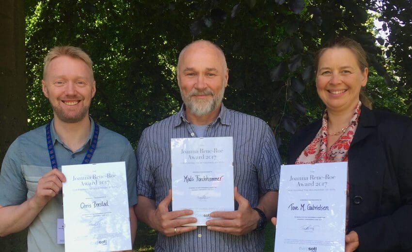 Chris Borstad, Mads Forchhammer and Tove M. Gabrielsen from UNIS was awarded The Joanna Renc-Roe Award – "For pushing the boundaries of Scholarly Teaching and Learning (SoTL)" at the 2nd EuroSoTL conference, 8-9 June 2017, in Lund, Sweden.