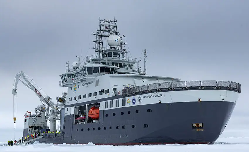 R/V Kronprins Haakon on a scientific cruise north of Svalbard. (Archive photo: © Christian Morel).