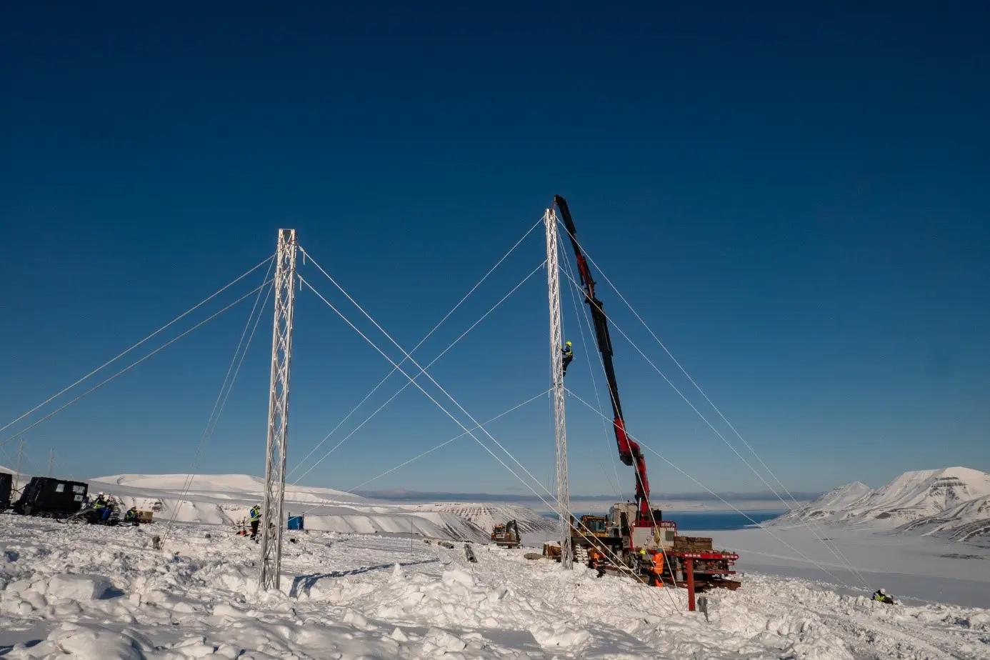 The radar consists of three elements – a main array of 16 towers, each 20 meters high arranged in a line almost 300 m long, a secondary array of six towers in a 125 m long line placed 100 m behind the main array and a 20 ft shipping container placed between the two. The transmitters are housed in the shipping containers and the antennas are mounted between the towers. The radar was operational from 2016 – 2018, before an unusual storm caused heavy icing on both antenna arrays. This caused both arrays to collapse. The system became operational again fall 2023, and is currently operating in a commissioning phase, with no public data.